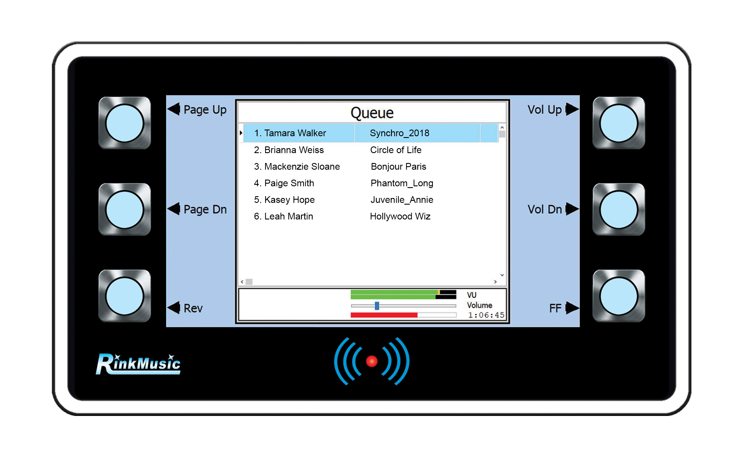 | Position in the queue is displayed on the rinkside console when your RinkMusic keytag is presented |